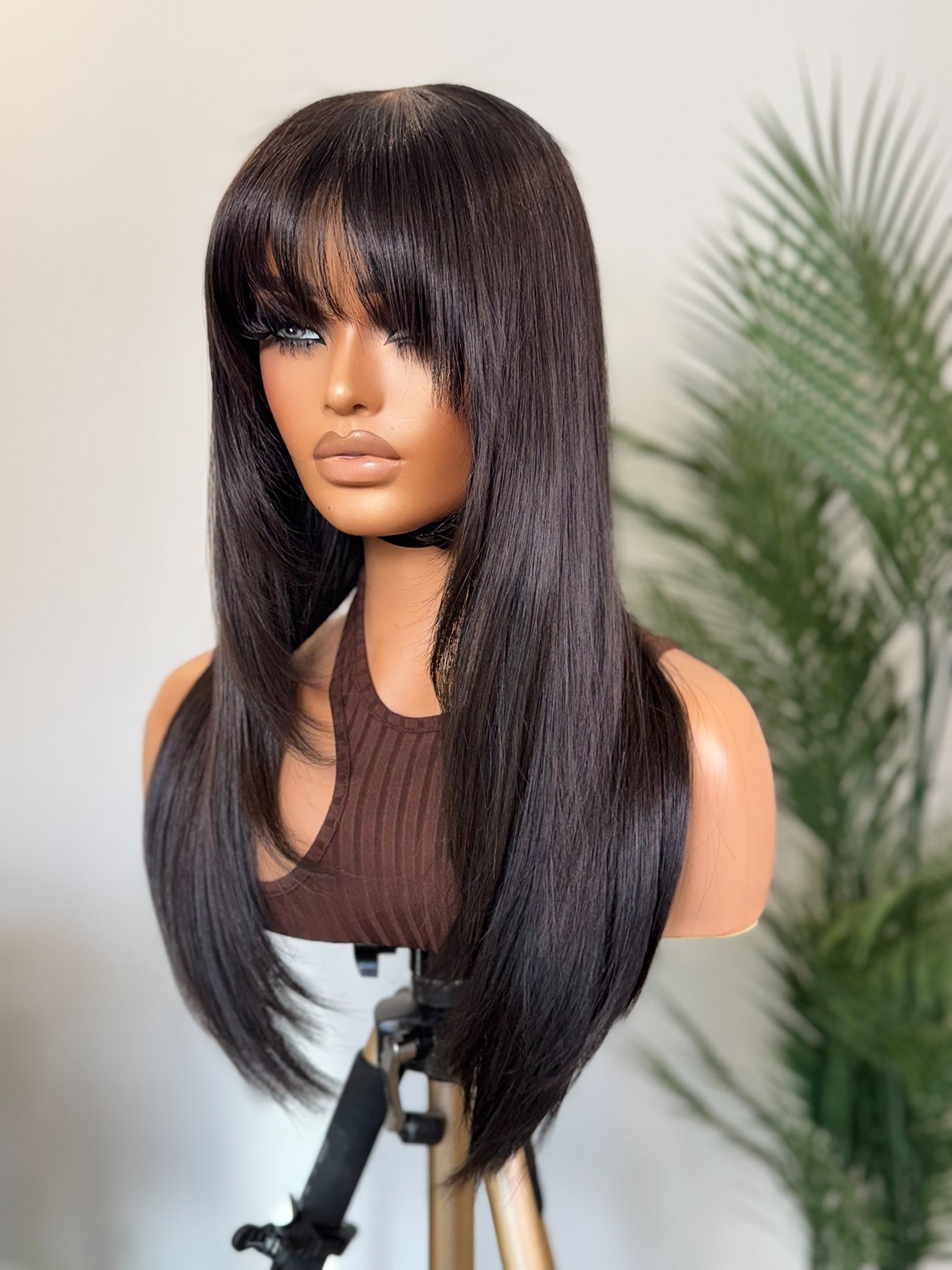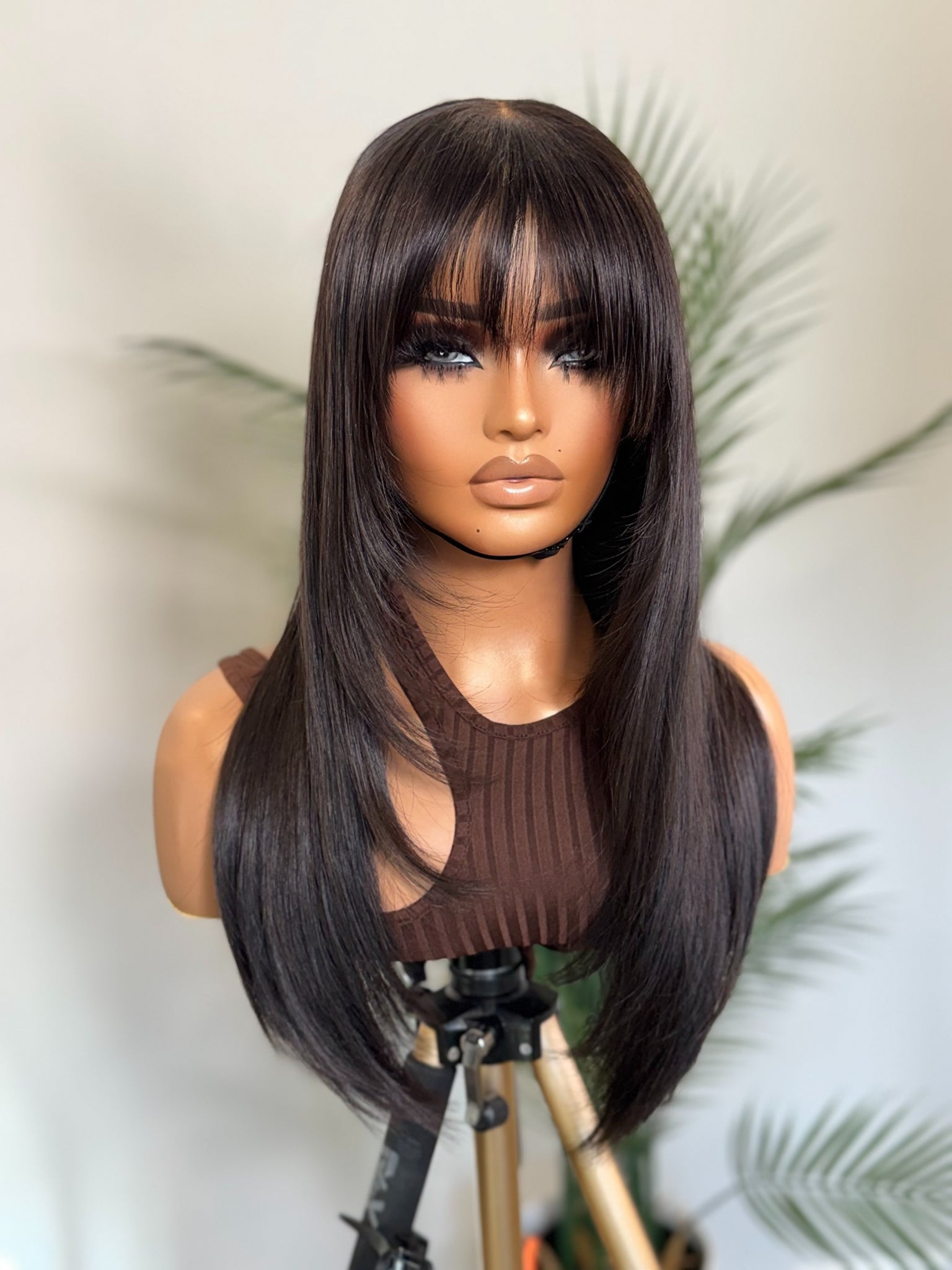 A simple, easy to wear bang unit will literally change your life. There's no lace to blend, so with "Clover" you are truly able to put it on, give her a quick 5 min press, and you're done. No melting, blending, or curling needed. The layers give your wig style while the bang highlights your face shape. Perfect for those who are looking to try their first wig or the woman who just wants to be out the door in 5 mins.